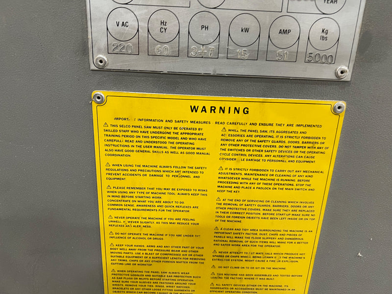 2000 Biesse Selco EB 90 Front Loading Panel Saw - Ohio