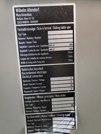 Altendorf Sliding Table Saw - Model F 45