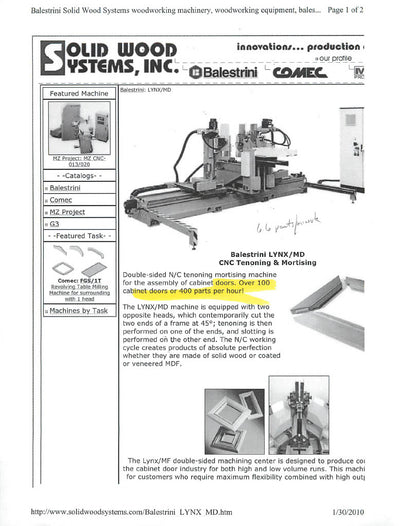 2008 Balestrini Lynx/MD CNC Double End Tenoning and Mortising Machine