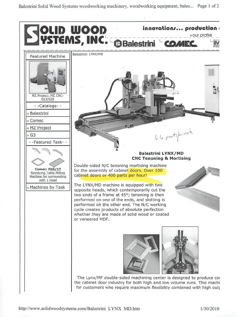 Used 2008 Balestrini Lynx CNC Double End Tenoning and Mortising Machine