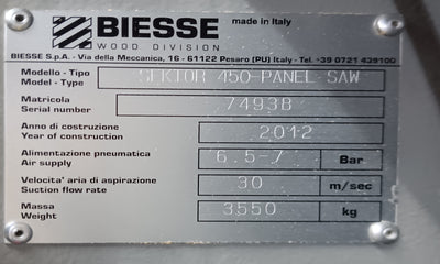 2012 Biesse Selco Sektor 450 Panel Saw - Florida
