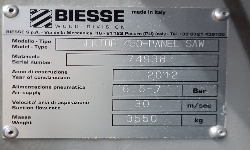 2012 Biesse Selco Sektor 450 Panel Saw