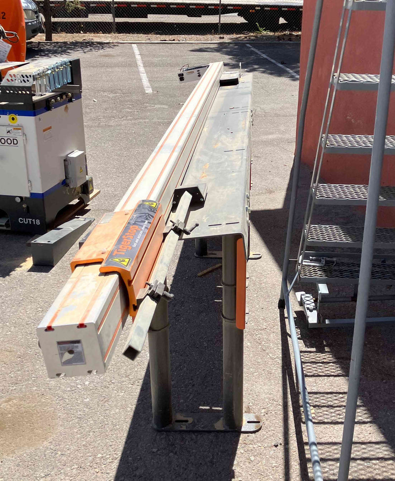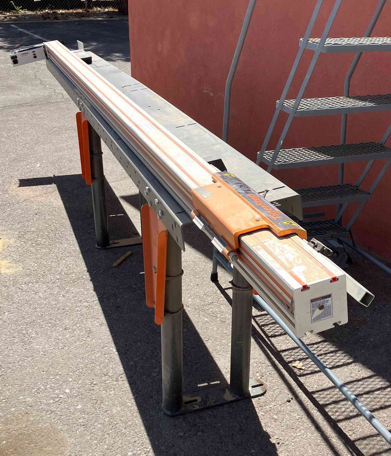 2022 TigerStop TS12 12' Automated Pusher & Stop, 12' Working Length, 180lb Capacity, 110/240v, S/N 2231888, & (1) 6' Outfeed Table